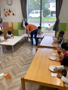 お給食にも秋の味覚が登場し、美味しそうに食べれいます😋🍠