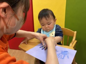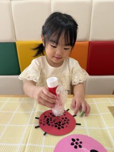 こんにちは💕今回は製作の様子をご紹介します✨テーマは「こいのぼり」です🎏まずはもも組さんから…