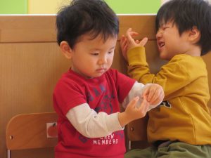 友だち同士で見合って「あれ?ちがうよ?」と言い合いながら一生懸命に立てて、