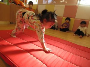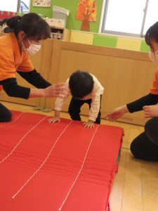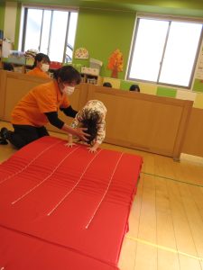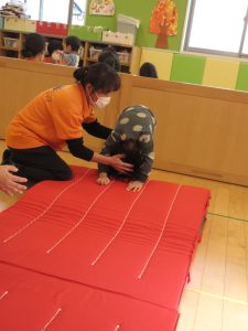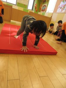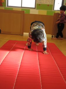 安全に配慮しながら前転運動を進めていきたいと思っています。