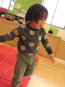 縄跳びは去年から挑戦し楽しんでいますが、地面を沿わせるように縄を動かす「ヘビ」はとっても上手に跳び越えています。
