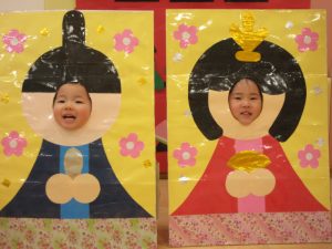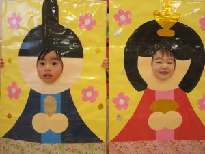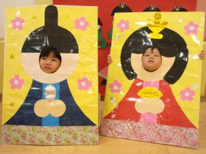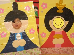 その後顔出しパネルでおひなさまやおだいりさまになって写真を撮りました。