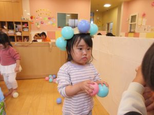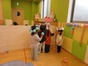 チラッと覗いてみると、ステキな帽子を被ったり、保育士のお洋服を飾りつけるお友だちもいましたよ![]()