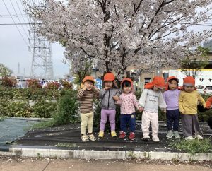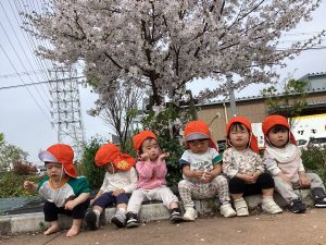 最後にいちご組さん🍓りんご組さん🍎の桜の前で「ハイポーズ」の写真で終わりたいと思います😊