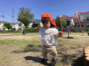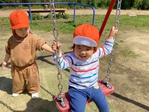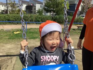 広い公園を元気いっぱいに走り回ったり、ブランコでは、順番を守りながら楽しむ姿も見られました。「おして〜」と保育者に声を掛け、揺れるたびに嬉しそうな笑顔を見せてくれました🧡