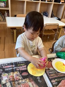 その後は絵の具をつけてポンポンと上手にスタンプができていますね!