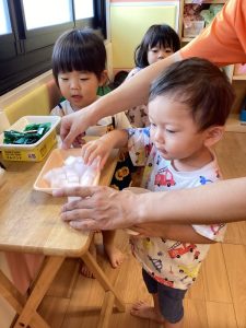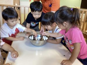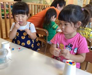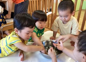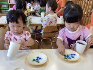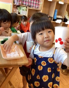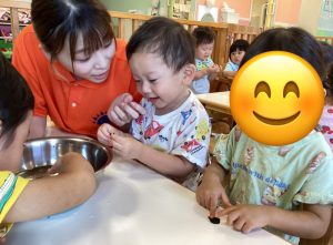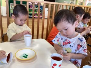 緑色になったのを見て「ほうれん草だ❗️」と目を輝かせるお友だちもいましたよ😊