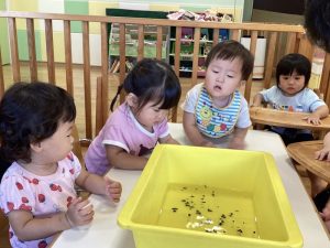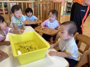 今度は水につけてワカメが戻る様子をみんなで観察しました🔍