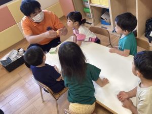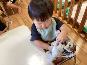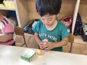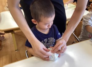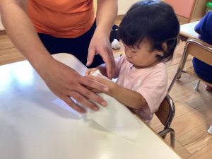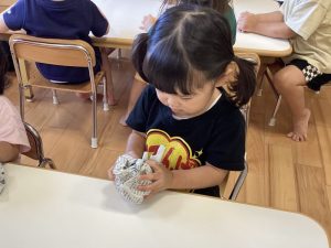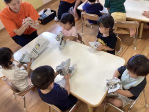 「ギュッギュ❗️」と言いながら、力を込めて丸める子どもたち🙌