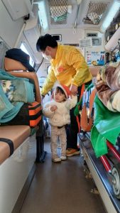 救急車に乗ると、キョロキョロと見渡しながら中を見ていた子どもたち👀✨