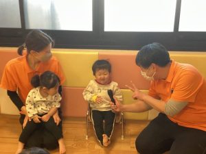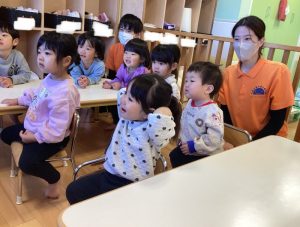 緊張していたお友だちもいましたが、保育士のお膝の上なら安心☺️