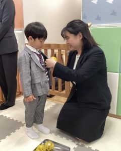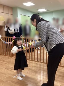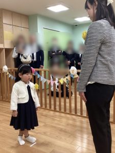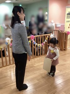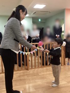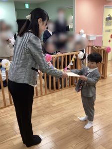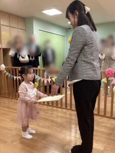緊張しながらも、嬉しそうにカードを受け取るいちご組のお友だち💖