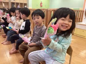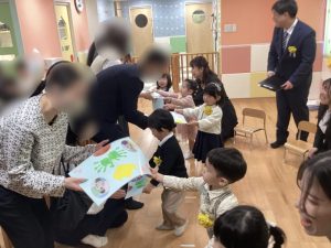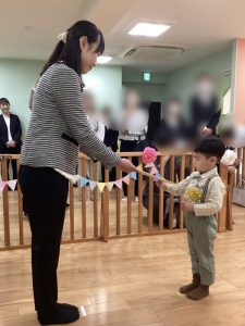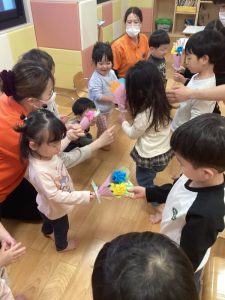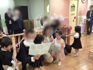 もも、いちご組さんから、卒園するりんご組さんへ花束のプレゼントをしました☺️