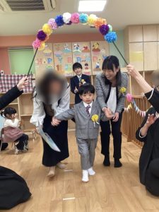 大好きな園長先生とお花のゲートをくぐりたいと、