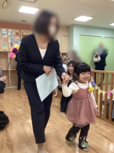 保育士に抱っこされたり、お外で気分転換をしたりしながら少しずつ笑顔も増えてきました😊