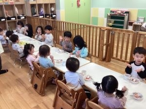 お別れ会あとは、机をくっつけて向かい合っておやつを食べました🍓