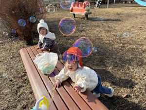 こんにちは☀️サンライズキッズ保育園安曇野園です❣️今回はもも組・いちご組さんの戸外遊びの様[…