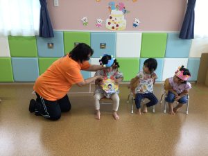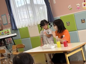 少し緊張しているお友だちもいたので、りんご組のお姉さんに手伝ってもらいました!