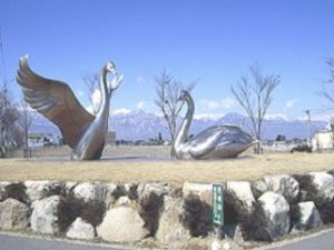 白鳥の飛来地であることを安曇野へ訪れる方々に知っていただくため、長野自動車道安曇野インターチェンジ交差点北西角に建てられました。