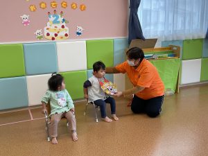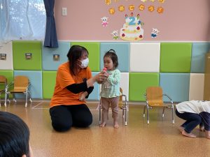 じゃんけんをしながら毎日楽しく歌っている歌なので、みんな大きな声で歌ってくれました!じゃんけんに勝つ事が出来ると「やった〜!!」と嬉しそうな子どもたちでした🎵