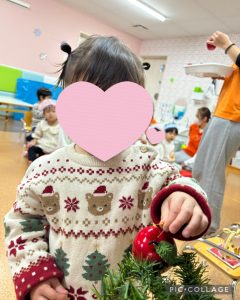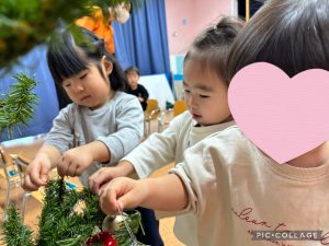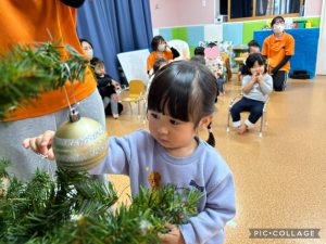 一番小さなお友だちも先生と一緒にオーナメントを飾りました⭐️
