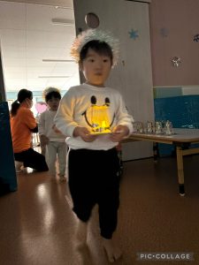 手作りキャンドルをもってりんご組さんが入場し、暗いお部屋がどんどん明るくなっていきます🕯