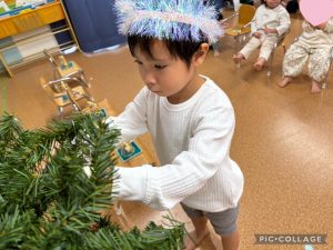 みんなで挨拶をした後はツリーの飾りつけをしました!