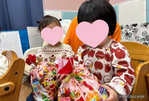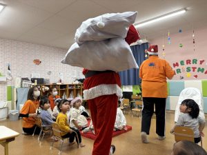 サンタさんに少しドキドキしているお友だちもいましたが、プレゼントをもらうと、可愛らしい笑顔を見る事が出来ましたよ!🎁