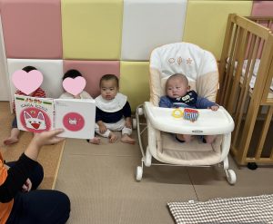 少し長い絵本でしたが、集中してみていたいちご組さん。「いいからいいから」と言うフレーズが気に入ったようで、「いいからいいから!」と真似っこしていましたよ🎵
