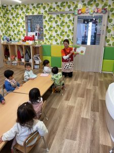 こんにちは!サンライズキッズ保育園白馬園です。今週の読み聞かせはもも組さんです。とって…