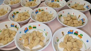 【1.2歳児食】エネルギー436kcal たんぱく質19.1g 脂質12.7g