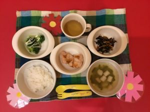 ★高野豆腐の卵とじ ★粉吹き芋 ★小松菜のおかか和え ★ごはん ★玉ねぎのみそ汁 ★お茶