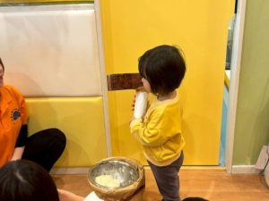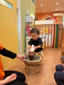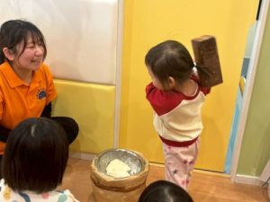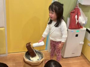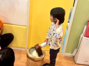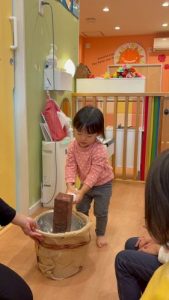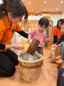 次に🍓いちご組さんも、りんご組さんを真似てぺったん!ぺったん!みんな、「ぺったん!ぺったん!」と元気に掛け声をかけて、頑張ってお餅つきをしてくれました☺️