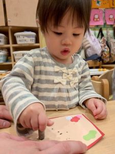 まずは、🍎りんご組さんが、力強く、ぺったん!ぺったん!と見本を見せてくれましたよ✨