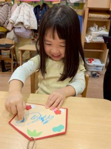 みんなでお顔のパーツを考えながらつけて、面白い可愛らしいお顔を完成させてくれました✨