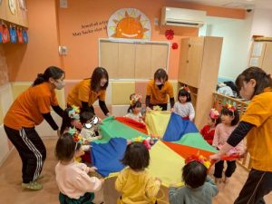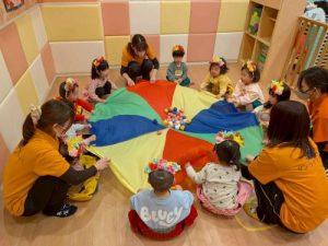 その後は、「まめまき」の歌に合わせてパラバルーンを行いました♪
