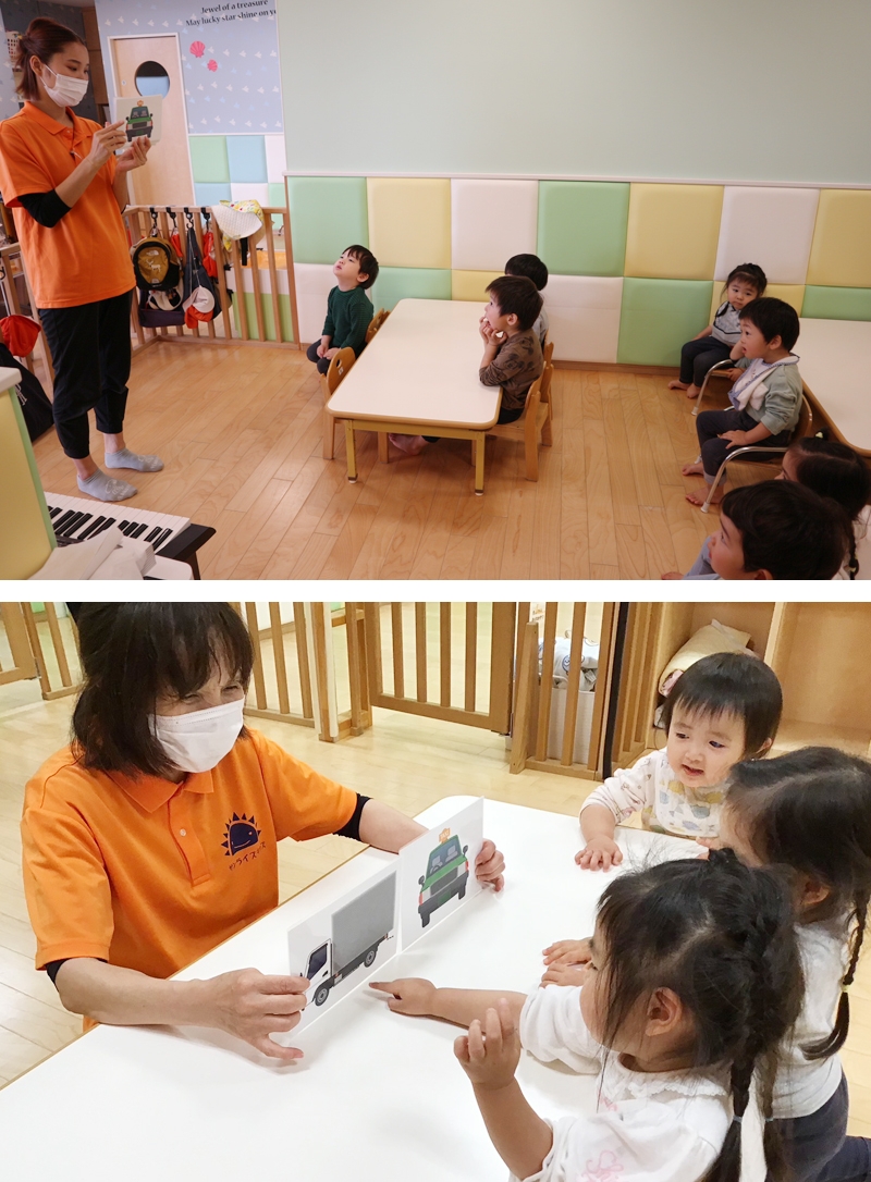 また、語彙力とコミュニケーション能力アップにより、1〜2歳の子どもたちは言葉でのやり取りを楽しんでいます。