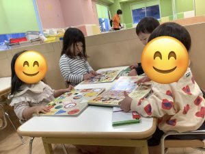 こんにちは。サンライズキッズ市川園です。1日を通して先生たちが読み合いをする時間があるので…