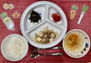サンライズキッズ保育園 ◎給食の様子 今日はいつもの献立とは少し違い、さといもが入った...