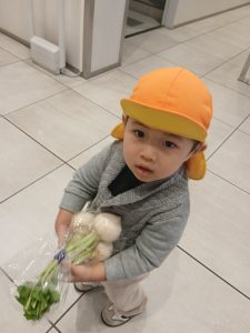 最後は先生と一緒に大きなかぶのポーズで記念写真![]()