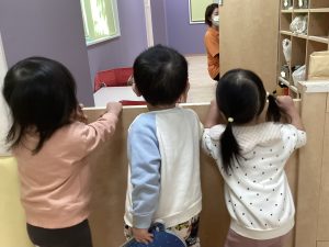 「せんせー、何してるのー」と声をかけてくれる子もいますよ!