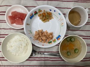 七夕なのですまし汁のにんじんを星形に、オクラも輪切りにするだけで星の形になります♪子ども達の「星!!」という声が聞こえてきて、給食を楽しそうに食べている様子を今日も見る事が出来ました。みんなはどんなお願い事をしたのかな?
