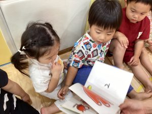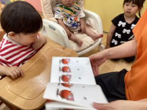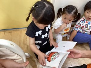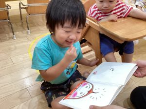 食べ物の絵を嬉しそうに見たり、自分の好きな