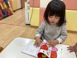 1歳児さんは、絵本のタイトルを覚えたり、