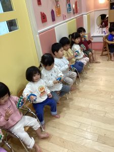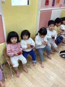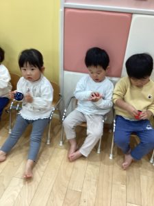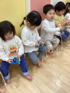 の曲を聴きながらカスタネットや鈴でリズム打ちを