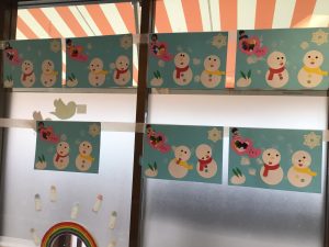 かわいい雪だるまが並びました