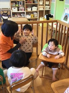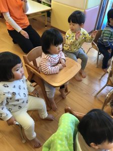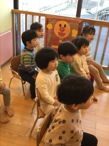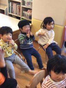 みんなからハッピーバースデーの歌のプレゼントでは大喜びのもも組さん