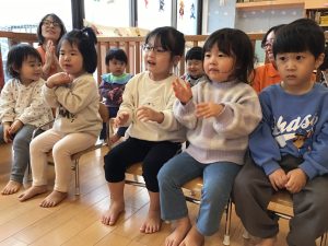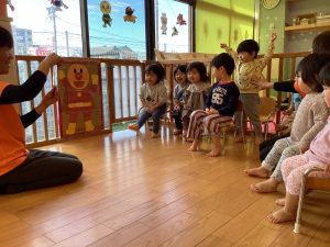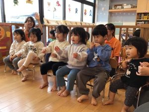 保育者の真似をしながら発音したり、身体を動かしたり、楽しんでいます![]()