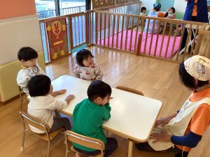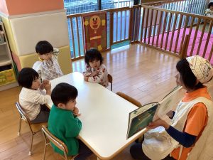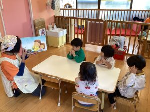 ピーマンマンがバイキンと戦っている場面では、食い入る様に見ている子どもたち👀