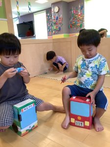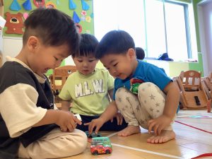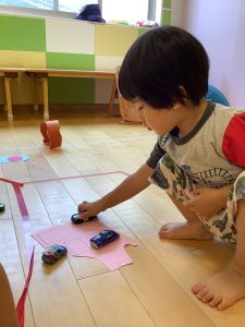 車の数も多くあったので子どもたちは貸し借りをしながらいろんな車で遊びました!